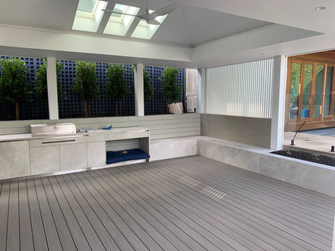 Situated in the serene locale of Canterbury, this Hamptons-style outdoor entertaining area stands as a testament to meticulous craftsmanship and attention to detail. From the durable PVC deck boards to the elegant skylights gracing the pavilion roof, every aspect of this project exudes excellence.